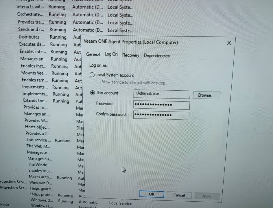 • right-click on the services > properties > Log On
